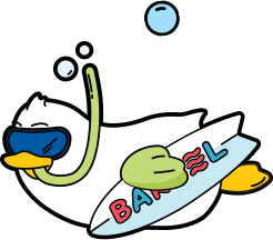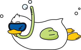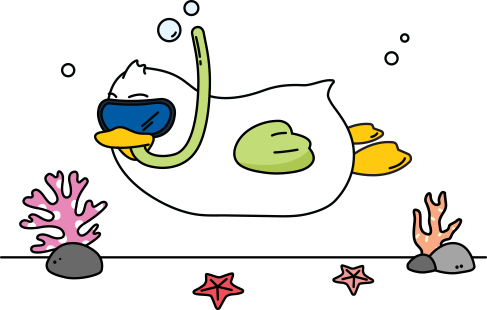 스노클링을 즐기는 호기심 많은 오리처럼,