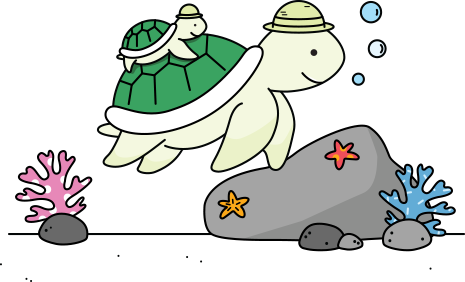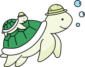 엄마 거북이와 함께 헤엄치는 아기 거북이처럼,